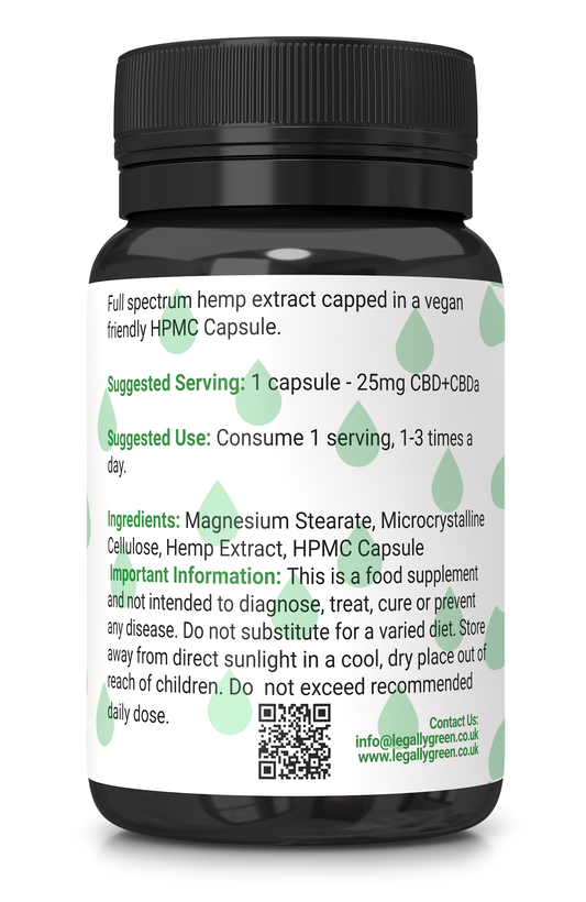 Legally Green Raw Hemp Extract Capsules 30 x 25mg – 750mg CBD+CBDa